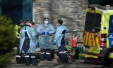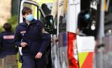 Seorang paramedis berjalan di luar menara perumahan umum di Melbourne Utara, Australia,Rabu (8/7). (FOTO : EPA-EFE / JAMES ROSS)