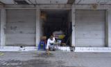 Pedagang Pasar Seni Kuta bersembahyang di depan kiosnya menjelang pembukaan kawasan wisata di Badung, Bali, Rabu (8/7/2020). Pemerintah Provinsi Bali akan memulai tahapan pertama tatanan normal baru di Bali pada Kamis (9/7) termasuk membuka kawasan wisata secara bertahap dengan menerapkan protokol kesehatan secara ketat untuk mencegah penyebaran pandemi COVID-19. (FOTO : ANTARA/FIKRI YUSUF)