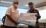 Direktur Utama Bank Mandiri Royke Tumilaar memberikan secara simbolis kredit modal kerja (KMK) kepada penerima dalam program Pemulihan Ekonomi Nasional (PEN) di Bintaro,Tangerang Selatan, Banten, Rabu (8/7). Mendukung program PEN dari dampak covid-19, Bank Mandiri mengalokasikan Rp30 triliun untuk penyaluran kredit produktif ke segmen UMKM dan Wholesale dengan fokus pada usaha padat karya dan yang mendukung ketahanan pangan . Agar pernyaluran bisa dilakukan dengan cepat dan tepat sasaran, Bank Mandiri menggandeng berbagai komponen masyarakat, termasuk nasabah eksisting, serta memanfaatkan dukungan IT dalam pemrosesan aplikasi.Prayogi/Republika (FOTO : Republika/Prayogi)