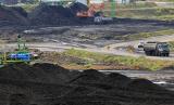 Alat berat beroperasi di kawasan penambangan batu bara Desa Sumber Batu, Kecamatan Meureubo, Aceh Barat, Aceh, Rabu (8/7/2020). Kementerian ESDM menetapkan Harga Batu bara Acuan (HBA) Juli 2020 sebesar US$52,16 per ton turun sebesar US$0,82 per ton atau 1,54 persen dibandingkan Juni 2020 sebesar US$52,98 per ton, penurunan tersebut disebabkan minimnya permintaan ekspor batu bara untuk pasar global khusunya China dan India. (FOTO : ANTARA/Syifa Yulinnas)