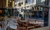 Kursi dan meja ditumpuk di dalam bisnis tertutup di Melbourne, Australia, Kamis (9/7/2020). Wilayah metropolitan Melbourne dilockdown dalam upaya memperlambat penyebaran virus corona. (FOTO : EPA-EFE / LUIS ASCUI AUSTRALIA )