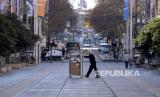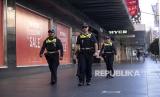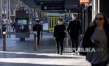Orang-orang memakai masker berjalan di Melbourne, Australia, Kamis (9/7/2020). Wilayah metropolitan Melbourne dilockdown dalam upaya memperlambat penyebaran virus corona. (FOTO : EPA-EFE / LUIS ASCUI )