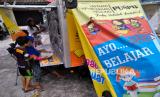 REPUBLIKA.CO.ID, YOGYAKARTA -- Anak-anak mendatangi layanan perpustakaan keliling PUSPITA dari Perpustakaan Kota Yogyakarta di Ngampilan, Yogyakarta, Kamis (9/7).