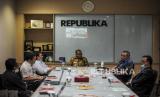 Pemimpin Redaksi Republika Irfan Junaidi (tengah) bersama Wakil Ketua Umum Partai Nasdem Ahmad M. Ali (kedua kanan) dan Ketua Komisi VII DPR RI dari Fraksi Partai Nasdem Sugeng Suparwoto (kanan) berbincang saat mengunjungi kantor Republika di Jakarta, Kamis (9/7). Kunjungan itu sebagai ajang silaturahim dan mendiskusikan dinamika politik serta kondisi bangsa dengan isu-isu terkini. Republika/Putra M. Akbar (FOTO : Republika/Putra M. Akbar)