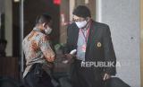 Mantan Direktur Keuangan PT Dirgantara Indonesia (Persero) (PTDI) periode 2012-2017 Uray Azhari (kanan) bersiap menjalani pemeriksaan di gedung KPK, Jakarta, Jumat (10/7/2020). Uray Azhari diperiksa sebagai saksi untuk tersangka Mantan Direktur Niaga PTDI Irzal Rinaldi Zailani terkait kasus dugaan korupsi kegiatan penjualan dan pemasaran pesawat PTDI tahun 2007-2017. (FOTO : ANTARA/Nova Wahyudi)