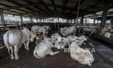 Sejumlah sapi yang telah diperiksa kesehatannya di Rumah Potong Hewan (RPH) Cakung, Jakarta, Jumat (10/7). Pemeriksaan itu dilakukan untuk menjamin kesehatan hewan kurban menjelang Hari Raya Idul Adha 1441 Hijriah. Republika/Putra M. Akbar (FOTO : Republika/Putra M. Akbar)