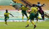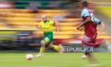 Teemu Pukki menggiring bola pada laga Norwich vs WHU, di Norwich Sabtu (11/7). (FOTO : EPA-EFE/Ian Walton)