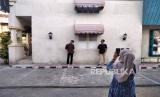Pengunjung berfoto di salah satu spot Studio Alam Gamplong, Moyudan, Sleman, Yogyakarta, Sabtu (11/7). Studio Alam Gamplong menjadi salah satu destinasi wisata baru di Jogja hyang instagramable. Selain digunakan untuk pengambilan gambar film, warga juga bisa mencicipi aneka macam bentuk set bangunan zaman dulu. Destinasi yang sangat cocok untuk pengunjung yang gemar berswafoto. (FOTO : Wihdan Hidayat / Republika)