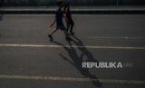 REPUBLIKA.CO.ID, BEKASI -- Warga memadati area Car Free Day (CFD) Bekasi di Jalan Jendral Ahmad Yani, Kota Bekasi, Jawa Barat, Ahad (12/7). CFD tersebut digelar dengan menerapkan protokol kesehatan seperti pengecekan suhu tubuh, penyemprotan pembersih tangan dan penyemprotan disinfektan. Anak dibawah umur lima tahun juga dilarang masuk ke area CFD. Namun aktifitas jarak fisik masih sulit diterapkan pada gelaran tersebut akibat pergerakan warga yang masif.