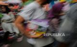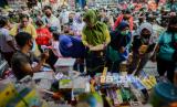 REPUBLIKA.CO.ID, JAKARTA -- Jelang tahun ajaran baru, sejumlah warga memadati Pasar Asemka, Jakarta, Ahad (12/7). Pasar Asemka ramai dipadati warga untuk membeli perlengkapan sekolah seperti buku, tas, peralatan tulis dan sepatu. Meski aktivitas sekolah masih dilakukan secara daring, namun menurut para pedagang, jelang tahun ajaran baru ini omset penjualan mereka mengalami kenaikan sebesar 30 persen.