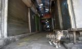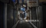 REPUBLIKA.CO.ID, JAKARTA -- Petugas keamanan berjaga di Pasar Cempaka Putih, Jakarta, Senin (13/7/2020).