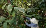 Kopi robusta siap panen di Girimulyo, Kulonprogo, Yogyakarta, Selasa (14/7). Kopi robusta Kulonprogo atau dikenal Kopi Menoreh ditanam warga masih sebatas konsumsi sendiri. Namun, beberapa kedai kopi di Perbukitan Menoreh mulai mempopulerkan kopi robusta dari Bukit Menoreh. (FOTO : Wihdan Hidayat / Republika)