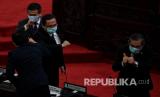 REPUBLIKA.CO.ID, JAKARTA -- Pimpinan DPR Sufmi Dasco Ahmad bersama Aziz Syamsudin dan Rachmat Gobel menerima Hasil Pemeriksaan Laporan Keuangan Pemerintah Pusat dari Ketua Badan Pemeriksa Keuangan Agung Firman Sampurna saat Rapat Paripurna DPR ke-18 Masa Persidangan IV Tahun Sidang 2019-2020 di Kompleks Parlemen Senayan, Jakarta, Selasa (14/7/2020).