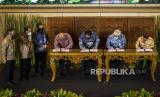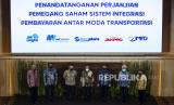 REPUBLIKA.CO.ID, JAKARTA -- Menteri Perhubungan Budi Karya Sumadi bersama Wakil Menteri BUMN II Kartika Wirjoatmodjo dan Gubernur DKI Jakarta Anies Baswedan menyaksikan Penandatanganan Perjanjian Pemegang Saham Sistem Integrasi Pembayaran Antar Moda Transportasi oleh Direktur Utama PT MRT Jakarta William Sabandar, Direktur Utama PT Transportasi Jakarta Sardjono Jhony Tjitrokusumo, Direktur Utama PT Jakarta Propertindo Dwi Wahyu Daryoto dan Direktur Utama PT Moda Integrasi Transportasi Jabodetabek Tuhiyat di kantor Kementerian Perhubungan, Jakarta, Rabu (15/7/2020).