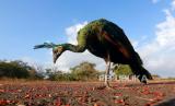 Burung Merak Hijau (Pavo muticus) yang dilepasliarkan berada savana bekol Taman Nasional Baluran, Jawa Timur, Rabu (15/7/2020). Sebanyak tiga burung Elang jenis Ular Bido, Elang Laut Perut Putih, Elang Brontok Fase Gelap dan 4 burung Merak Hijau hasil dari penyerahan masyarakat di Balai KSDA Yogyakarta, dilepasliarkan di Taman Nasional Baluran. ANTARA FOTO/Budi Candra Setya/foc. (FOTO : Antara/Budi Candra Setya)