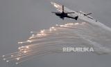 Helikopter serang AH-64E meluncurkan suar selama latihan militer Han Kuang (Chinese Glory) ke-36 di Taichung, Taiwan, Taiwan, Kamis (16/7). Latihan menembak langsung mensimulasikan respons terhadap serangan musuh terhadap objek vital di Taiwan. (FOTO : EPA-EFE/RITCHIE B. TONGO)