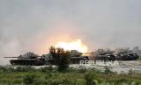 Tank M60A3 menembak selama latihan militer Han Kuang (Chinese Glory) ke-36 di Taichung, Taiwan, Taiwan, Kamis (16/7). Latihan menembak langsung mensimulasikan respons terhadap serangan musuh terhadap objek vital di Taiwan. (FOTO : EPA-EFE/RITCHIE B. TONGO)
