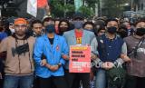 Ratusan mahasiswa dari berbagai elemen mahasiswa menggelar aksi menolak Omnibus Law, di depan Gedung DPRD Jawa Barat, Jalan Diponegoro, Kota Bandung, Kamis (16/7). Mereka menuntut agar RUU Omnibus Law dicabut dari Prolegnas. Menurut mereka, rancangan Undang-Undang Cipta Kerja tersebut dianggap telah merugikan rakyat khususnya kaum buruh. (FOTO : Edi Yusuf/Republika)
