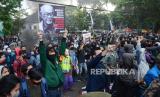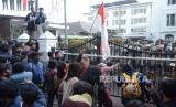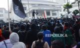 REPUBLIKA.CO.ID, BANDUNG -- Ratusan mahasiswa dari berbagai elemen mahasiswa menggelar aksi menolak Omnibus Law, di depan Gedung DPRD Jawa Barat, Jalan Diponegoro, Kota Bandung, Kamis (16/7).