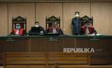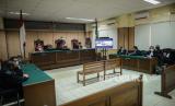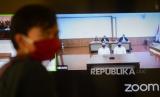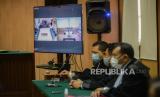 Suasana sidang putusan kasus penyiraman air keras terhadap penyidik Komisi Pemberantasan Korupsi (KPK) Novel Baswedan dengan terdakwa Rony Bugis dan Rahmat Kadir Mahulette yang dilaksanakan secara virtual di Pengadilan Negeri Jakarta Utara, Jakarta, Kamis (16/7). (FOTO : Republika/Thoudy Badai)