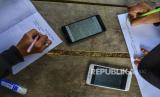 REPUBLIKA.CO.ID, CIAMIS -- Siswa kelas IX Sekolah Menengah Pertama (SMP) Plus Pasawahan mengerjakan tugas sekolah di pos kamling Desa Pasawahan, Kabupaten Ciamis, Jawa Barat, Kamis, (16/7/2020).