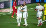 Para pemain Real Madrid merayakan setelah memenangkan Villarreal CF dalam pertandingan sepak bola LaLiga Spanyol mereka yang diadakan di Stadion Alfredo Di Estefano, di Madrid, Spanyol, 16 Juli 2020. Real Madrid adalah juara LaLiga Spanyol 2020 dan memenangkan Kejuaraannya yang ke 34. (FOTO : EPA-EFE / Rodrigo Jimenez)