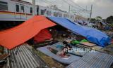 Sebanyak 36 kepala keluarga terdampak penggusuran terpaksa membangun tenda sementara di kawasan bantaran rel hingga menunggu waktu relokasi ke rumah susun yang disediakan pemerintah setempat.
