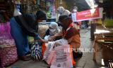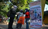 REPUBLIKA.CO.ID, JOMBANG -- Anggota komunitas nol sampah dan sanggar hijau Indonesia "merampok" kantong plastik warga dan diganti dengan tas ramah lingkungan saat melakukan sosialisasi pengurangan plastik sekali pakai di pasar tradisional Kabupaten Jombang, Jawa Timur, Sabtu (18/7/2020).