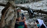 Keluarga korban menangis saat melihat proses pencarian korban banjir bandang di Desa Radda, Kabupaten Luwu Utara, Sulawesi Selatan, Sabtu (18/7/2020). Hingga hari kelima, tim SAR telah menemukan 36 korban meninggal dunia dan 18 orang lainnya masih terus dilakukan pencarian. (FOTO : Antara/Abriawan Abhe)