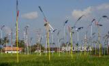 Sejumlah kincir angin atau Kolecer terpasang di lahan pertanian di Desa Cisayong, Kabupaten Tasikmalaya, Jawa Barat, Sabtu (18/7/2020). Pemerintah Desa Cisayong menggunakan dana desa untuk membuat 500 buah kolecer sebagai pengusir hama burung di lahan pertanian serta memperkenalkannya sebagai permainan tradisional Sunda. (FOTO : Antara/Adeng Bustami)