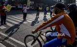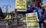 REPUBLIKA.CO.ID, BANDUNG -- Anggota Forum Komunikasi Pesepeda Bandung Raya menggelar Kampanye Tertib Bersepeda di Jalan Ir H Djuanda, Kota Bandung, Ahad (19/7).