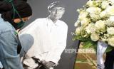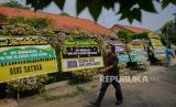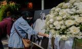 Sejumlah karangan bunga memenuhi halaman rumah mendiang sastrawan Sapardi Djoko Damono di rumah duka Kompleks Dosen UI Ciputat, Jakarta, Ahad (19/7). Sastrawan Indonesia Sapardi Djoko Damono meninggal pada usia 80 tahun di Rumah Sakit Eka Hospital BSD Tangerang pukul 09.17 WIB dan akan dimakamkan di Taman Pemakaman Giritama, Giri Tonjong, Bogor, Jawa Barat. (FOTO : Republika/Thoudy Badai)