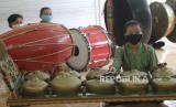 Pelajar memainkan gamelan saat mengiringi pentas tembang jawa bertajuk Corona (Creatif Produktif Berdayaguna) di SD Katolik Frateran II, Kota Kediri, Jawa Timur, Senin (20/7/2020). Bernyanyi menggunakan bahasa jawa yang disiarkan secara langsung melalui media sosial tersebut guna memperingati Hari Anak Nasional (HAN) saat masa Adaptasi Kebiasaan Baru di tengah pandemi COVID-19 sekaligus melestarikan budaya jawa. ANTARA FOTO/Prasetia Fauzani/wsj. (FOTO : Antara/Prasetia Fauzani)