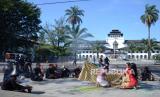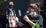 Para seniman yang tergabung dalam Masyarakat Seni Rakyat Indonesia (MASRI) menggelar doa bersama dan aksi seni Kidung Panjurung Sari Panggung yang menggambarkan kindisi para seniman yang terdampak pandemi Covid-19, di depan Gedung Sate, Kota Bandung, Senin (20/7). Aksi tersebut berharap pemerintah kembali mengizinkan para pelaku seni naik ke atas pentas atau manggung agar bisa kembali menafkahi keluarga. (FOTO : Edi Yusuf/Republika)
