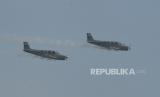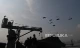 REPUBLIKA.CO.ID, JAKARTA -- Penerbang TNI Angkatan Laut dari skuadron udara 200, Wing Udara 2, Pusat Penerbangan TNI AL, melakukan latihan tempur terbang formasi dengan pesawat Bonanza G-36 melintasi KRI Semarang di Perairan Teluk Jakarta, Selasa (21/7/2020).