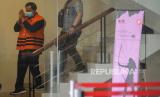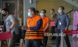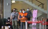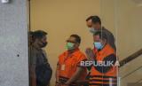 Kepala Badan Pengelola Keuangan dan Aset Daerah Kutai Timur, Kalimantan Timur Suriansyah (depan) bersama kepala Badan Pendapatan Daerah (Bapenda) Kutai Timur Musyaffa (belakang) usai diperiksa sebagai tersangka di Gedung Merah Putih KPK, Jakarta, Selasa (21/7). Suriansyah dan musyaffa diperiksa atas kasus dugaan korupsi pengerjaan infrastruktur di lingkungan Pemkab Kutai Timur tahun 2019-2020 bersama Bupati Kutai Timur Ismunandar, Ketua DPRD Kutai Timur Encek Unguria, Kadis PU Kutai Timur Aswandini, serta pihak swasta Aditya Maharani dan Deky Aryanto dalam operasi tangkap tangan (OTT) KPK pada kamis (2/7) dengan barang bukti uang tunai Rp170 juta, buku tabungan dengan saldo Rp4,8 miliar dan sertifikat deposito Rp1,3 miliar (FOTO : Republika/Thoudy Badai)
