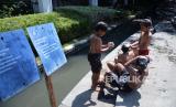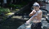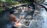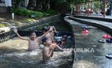 REPUBLIKA.CO.ID, Sejumlah anak asyik mandi di anak Sungai Cikapayang yang mengalir di depan Balai Kota Bandung, Selasa (21/7).