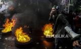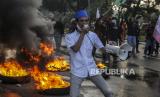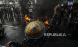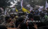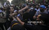 Sejumlah mahasiswa yang tergabung dalam Gerakan Nasional Tolak Reklamasi terlibat bentrok dengan aparat kepolisian saat melaksanakan aksi di depan Balaikota Jakarta, Selasa (21/7). Dalam aksi ini mereka menuntut agar Gubernur DKI Jakarta Anies Baswedan menghentikan proyek reklamasi di kawasan Ancol. Republika/Putra M. Akbar (FOTO : Republika/Putra M. Akbar)