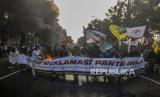Sejumlah mahasiswa yang tergabung dalam Gerakan Nasional Tolak Reklamasi melaksanakan aksi di depan Balaikota Jakarta, Selasa (21/7). Dalam aksi ini mereka menuntut agar Gubernur DKI Jakarta Anies Baswedan menghentikan proyek reklamasi di kawasan Ancol. Republika/Putra M. Akbar (FOTO : Republika/Putra M. Akbar)