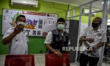 Anggota Palang Merah Indonesia (PMI) Kota Bandung beraktivitas di ruangan Posko Covid-19 usai diresmikan di PMI Kota Bandung, Jalan Aceh, Kota Bandung, Rabu (22/7). Posko tersebut bertujuan untuk mengawasi aktivitas masyarakat sekaligus memberikan edukasi, bantuan dan sosialisasi pencegahan Covid-19 di masa Adaptasi Kebiasaan Baru (AKB). Foto: Abdan Syakura/Republika (FOTO : ABDAN SYAKURA/REPUBLIKA)