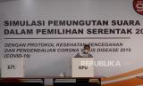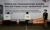 KPU memastikan protokol kesehatan diterapkan ketat saat pemungutan suara pemilihan kepala daerah serentak pada 9 Desember 2020. KPU menggelar simulasi pemungutan suara yang bakal jadi protokol resmi pada hari H pesta demokrasi.