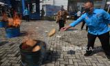 REPUBLIKA.CO.ID, SERANG -- Personel Badan Narkotika Nasional (BNN) Provinsi Banten bersama jajaran Forkopimda (Forum Komunikasi Pimpinan Daerah) setempat membakar paket ganja saat Pemusnahan Narkotika Selundupan di Serang, Banten, Rabu (22/7/2020).