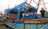 REPUBLIKA.CO.ID, PONTIANAK -- Dua petugas Kapal Pengawas Kementerian Kelautan dan Perikanan (KKP) bersiaga di salah satu Kapal Ikan Asing (KIA) ilegal hasil tangkapan di Stasiun Pengawasan Sumber Daya Kelautan dan Perikanan (PSDKP) Pontianak di Sungai Rengas, Kabupaten Kubu Raya, Kalimantan Barat, Rabu (22/7/2020).
