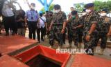 Menteri Kelautan dan Perikanan Edhy Prabowo (kelima kanan) meninjau Kapal Ikan Asing (KIA) ilegal di Stasiun Pengawasan Sumber Daya Kelautan dan Perikanan (PSDKP) Pontianak di Sungai Rengas, Kabupaten Kubu Raya, Kalimantan Barat, Rabu (22/7/2020). Edhy Prabowo menyatakan kapal pengawas Kementerian Kelautan dan Perikanan yaitu KP Orca 3 dan KP Hiu 11 berhasil menangkap dua KIA ilegal berbendera Vietnam beserta 18 nelayan Vietnam dan empat nelayan Kamboja di Laut Natuna Utara pada Rabu (15/7/2020). (FOTO : Antara/Jessica Helena Wuysang)