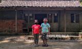 Siswa kelas tiga SDK Kenalan Diah Anggraeni (kiri) dan Primus Nugroho sebelum mengikuti materi di rumah dari Pak Suroto di Desa Kenalan, Magelang, Jawa Tengah, Rabu (22/7). Sejak pandemi Covid-19 Suroto rutin mengunjungi siswa kelas tiga untuk belajar di rumah. Susahnya sinyal dan minimnya prasarana menjadi penghambat belajar dengan sistem daring. (FOTO : Wihdan Hidayat / Republika)