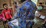 Guru SDK Kenalan Suroto (59) menyampaikan materi PPKN di rumah siswa untuk belajar di Desa Kenalan, Magelang, Jawa Tengah, Rabu (22/7). Sejak pandemi Covid-19 Suroto rutin mengunjungi siswa kelas tiga untuk belajar di rumah. Susahnya sinyal dan minimnya prasarana menjadi penghambat belajar dengan sistem daring. (FOTO : Wihdan Hidayat / Republika)