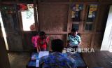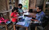 REPUBLIKA.CO.ID, MAGELANG -- Guru SDK Kenalan Suroto (59) menyampaikan materi PPKN di rumah siswa untuk belajar di Desa Kenalan, Magelang, Jawa Tengah, Rabu (22/7). Sejak pandemi Covid-19 Suroto rutin mengunjungi siswa kelas tiga untuk belajar di rumah. Susahnya sinyal dan minimnya prasarana menjadi penghambat belajar dengan sistem daring.