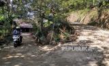 Guru SDK Kenalan Suroto (59) sampai di rumah siswa untuk belajar di Desa Kenalan, Magelang, Jawa Tengah, Rabu (22/7). Sejak pandemi Covid-19 Suroto rutin mengunjungi siswa kelas tiga untuk belajar di rumah. Susahnya sinyal dan minimnya prasarana menjadi penghambat belajar dengan sistem daring. (FOTO : Wihdan Hidayat / Republika)