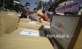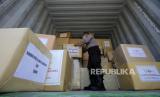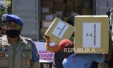 REPUBLIKA.CO.ID, SURABAYA -- Polisi menata paket bantuan di dalam kontainer di Polres Pelabuhan Tanjung Perak Surabaya, Jawa Timur, Rabu (22/7). Bhayangkari Jawa Timur mengirim sekitar 290 karton bantuan berisi kebutuhan sehari-hari untuk korban banjir bandang di Masamba, Kabupaten Luwu Utara, Sulawesi Selatan.