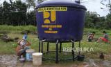 Warga terdampak banjir membersihkan badannya di pengungsian di Desa Wonuamonapa, Kecamatan Pondidaha, Kabupaten Konawe, Sulawesi Tenggara, Rabu (22/7/2020). Pihak BPBD Konawe merilis jumlah warga terdampak akibat luapan Sungai Konaweha dan Sungai Lahambuti hingga Selasa (21/7/2020) sebanyak 16.159 jiwa sementara 1.981 unit rumah terendam banjir. (FOTO : ANTARA/JOJON)